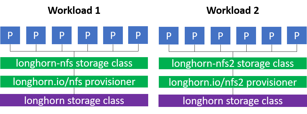 It’s possible to provision multiple RWX volumes from a single nfs-provisioner, but the workloads would share the underlying Longhorn backing storage.
